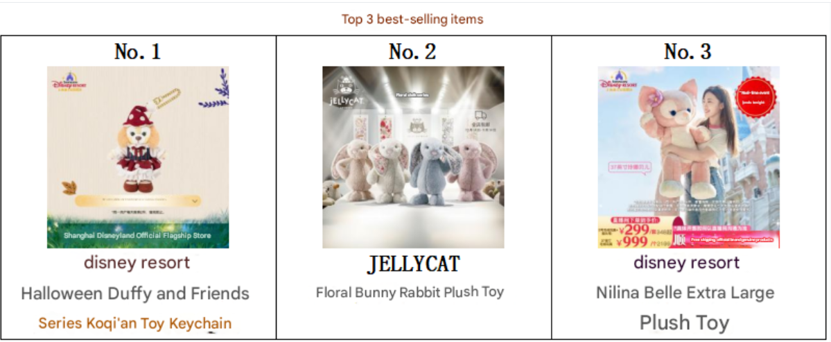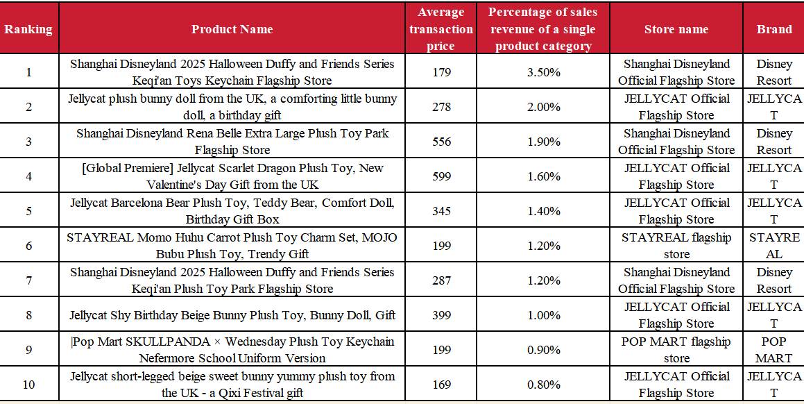 ▲Top 10 Best-Selling Plush Toys Products by Sales on Tmall in October