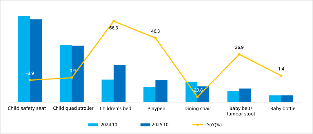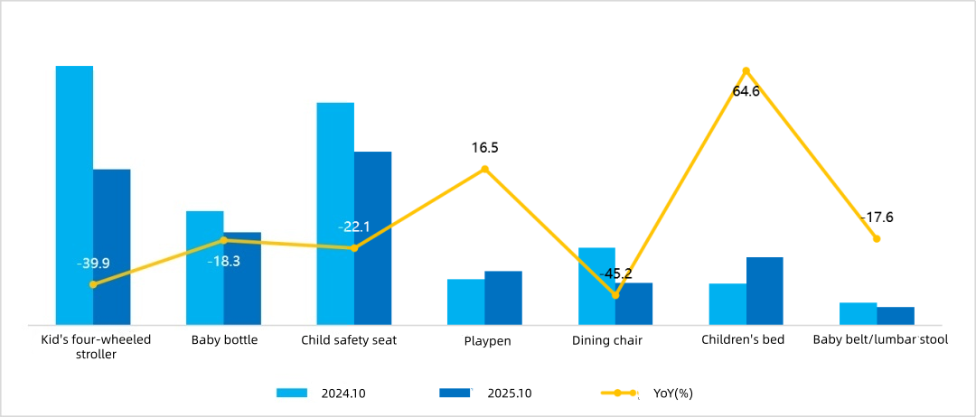 ▲Sales volume and YoY performance of Baby and Children Products on Tmall in October
