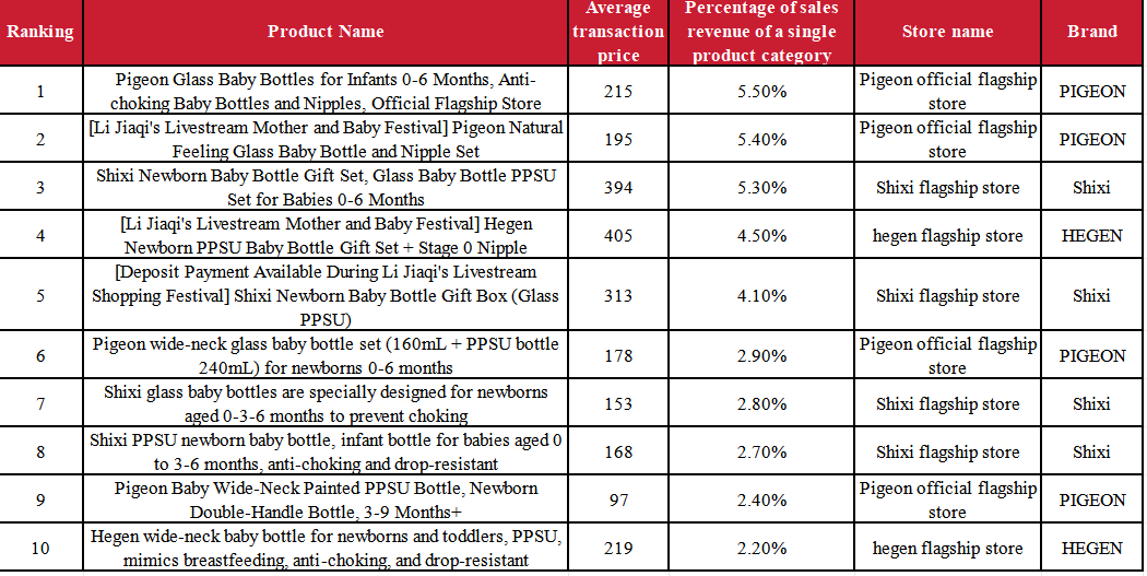 ▲Top 10 Best-Selling Feeding Bottles Products by Sales on Tmall in October