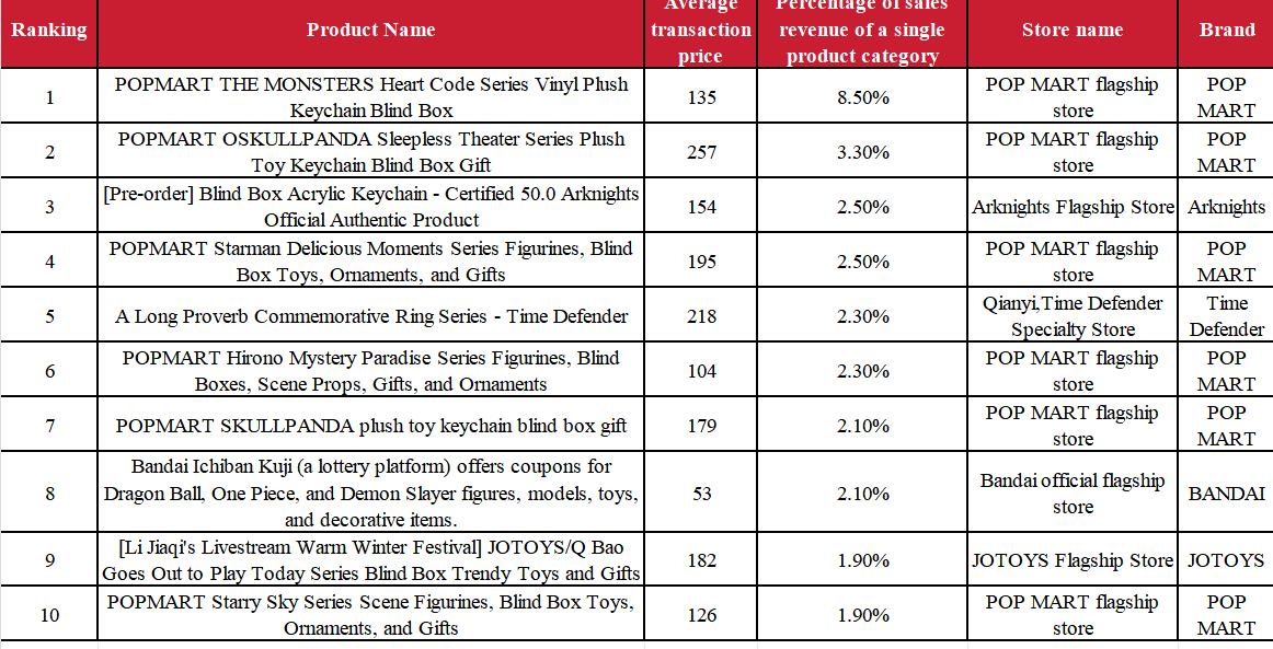 ▲Top 10 Best-Selling Blind Boxes Products by Sales on Tmall in October