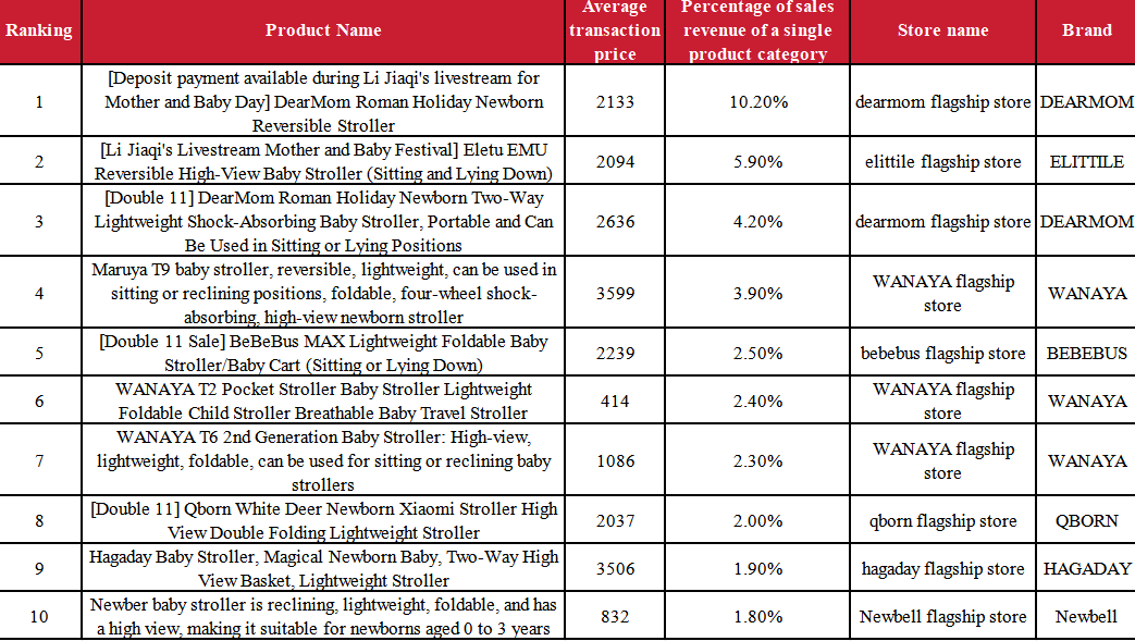 ▲Top 10 Best-Selling Baby Strollers Products by Sales on Tmall in October