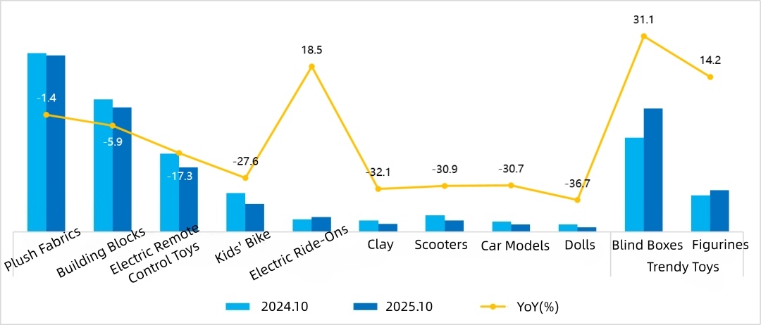 ▲Sales volume and YoY performance of Art & Collectable Toys on Tmall in October