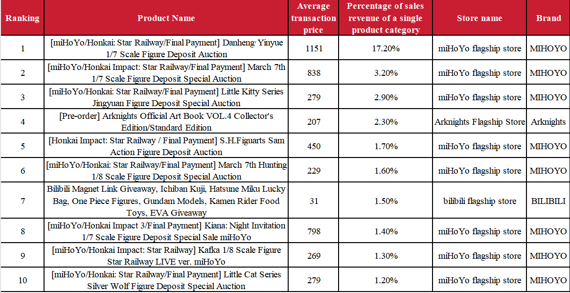 ▲Top 10 Best-Selling Figurines Products by Sales on Tmall in October