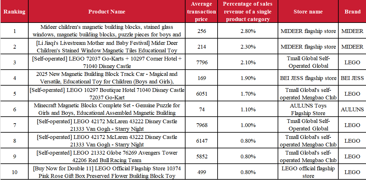 ▲Top 10 Best-Selling Building Blocks Products by Sales on Tmall in October